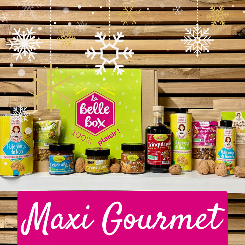 Pour les indécis (ou les très gourmands !), la Belle Box "Maxi Gourmet" propose une sélection des meilleurs produits du Moulin La Belle Huile et de La Belle Noix... Faites-nous confiance, avec cette Belle Box, vous êtes sûr.e.s de faire plaisir... ou de vous faire plaisir !!